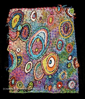 3 1/2" x 5" framed hand embroidery and beading on fabric