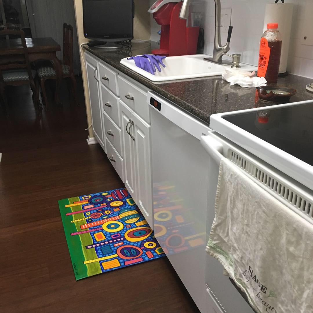 -2' x 3' sewn heavy canvas floor cloth/table runner -painted with acrylic paint and sealed with polycrylic